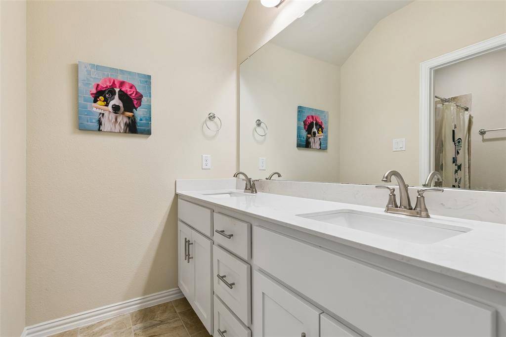 Welcome to this move-in ready, beautifully maintained two-story Union Main home that truly feels like new! Thoughtfully designed with 4 bedrooms, 3.5 baths, a private office, and a spacious game room, this home offers the perfect blend of comfort, style, and functionality. The refrigerator, washer, and dryer stay! From the moment you arrive, you'll be drawn in by the charming curb appeal, featuring a striking brick and stone elevation and a front-facing two-car garage. Step inside to a bright, welcoming interior where beautiful wood-look tile flooring and an open-concept layout create an inviting space ideal for everyday living and entertaining. At the front of the home, a versatile office provides the perfect setup for working from home, studying, or enjoying a quiet retreat. The spacious living room flows seamlessly into the heart of the home—a stunning kitchen designed for gathering. Complete with stainless steel appliances, granite countertops, upgraded cabinetry, and a large center island, it's perfect for hosting, cooking, or simply enjoying time together. The private first-floor primary suite offers a relaxing escape, featuring a spacious ensuite bath with a garden tub, separate shower, and ample room to unwind. Upstairs, you'll find a large game room, ideal for movie nights or a second living area—along with three generously sized bedrooms that provide flexibility for guests, family, or additional workspace. Step outside to enjoy the covered patio and expansive backyard, offering plenty of space to relax, entertain, or enjoy beautiful Texas evenings. Located in a vibrant, amenity-rich community, residents enjoy access to a resort-style pool, splash pad, playgrounds, parks, scenic walking trails, and peaceful ponds—perfect for an active and connected lifestyle. With easy access to UNT, TWU, Denton Square, shopping, dining, and I-35, this home offers unmatched convenience and comfort.